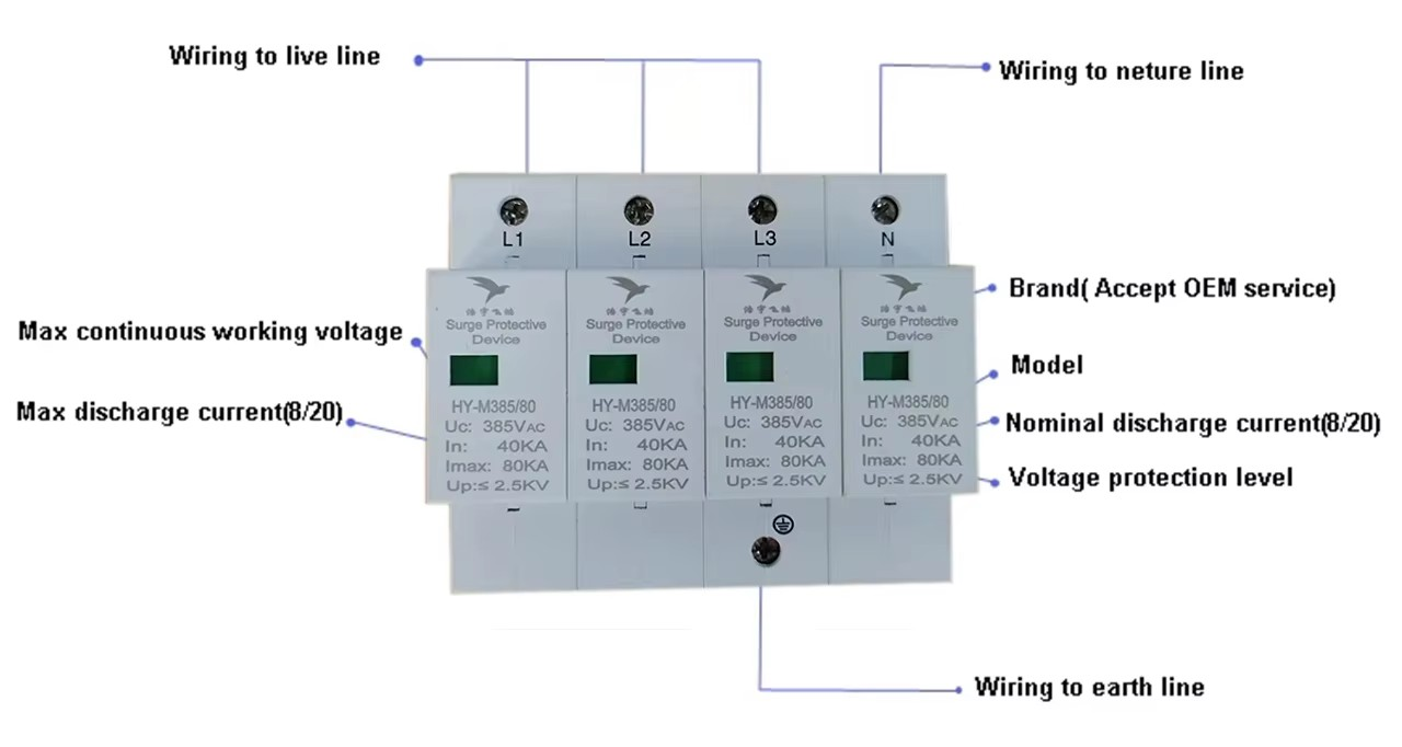 80KA T2 Low Voltage Three-Phase Lightning Arrester Surge Protector SPD Distribution for Electronic Equipment