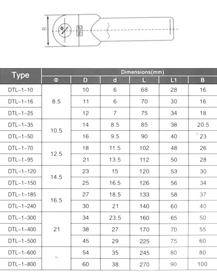 DTL Series Cable Glands Copper-Aluminum Terminal Nose Transition Terminal with Copper-Aluminum Cable