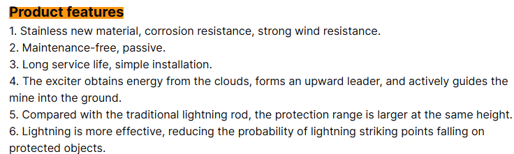 Be the first to review “Hot Sales Lightning Rod 0.6M Ball Lightning Rod Lightening System for Outdoor Parties 50M Protect Raduis” Cancel reply