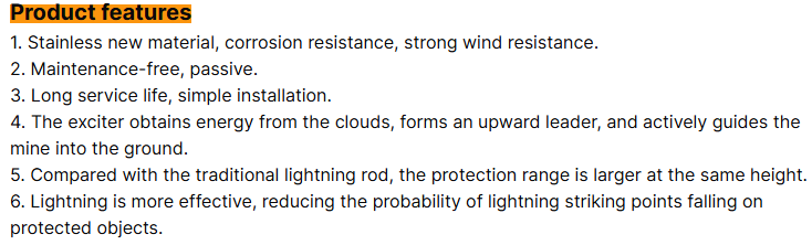 Lightning Protection 33KV Lightning Protection System Arrester or 24KV Lightning Rod