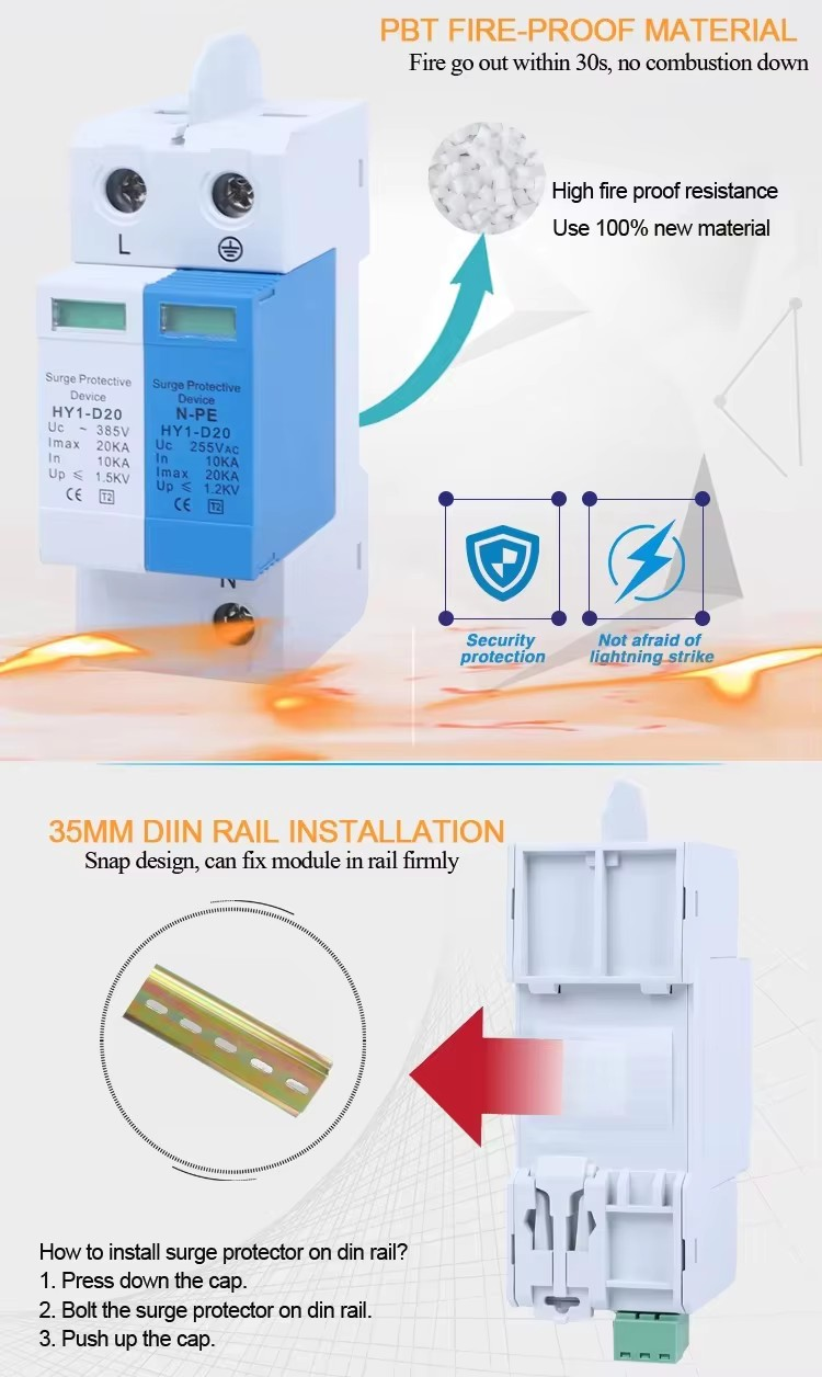 Hot Sell spd 2p 220v 20kA lightning Surge Arrester Device