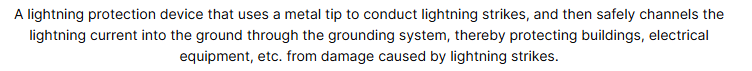 Lightning Protection 33KV Lightning Protection System Arrester or 24KV Lightning Rod