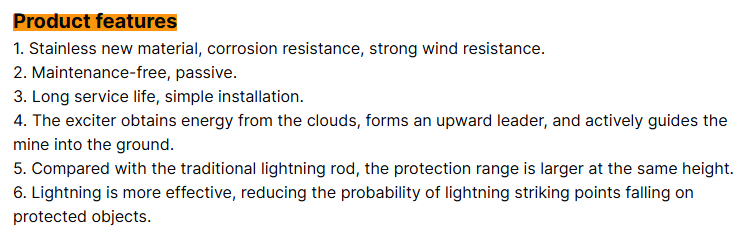 Be the first to review “New Product Lightning Rod Conductor Advanced Discharge Clamp Lightning Rod Kit for Roof” Cancel reply