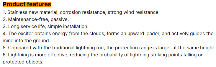 Be the first to review “PDC3.3 4.3 5.3 6.3 Advance Discharge Lightning Rod Stainless Steel Lightning Rod Lightning Arrester” Cancel reply